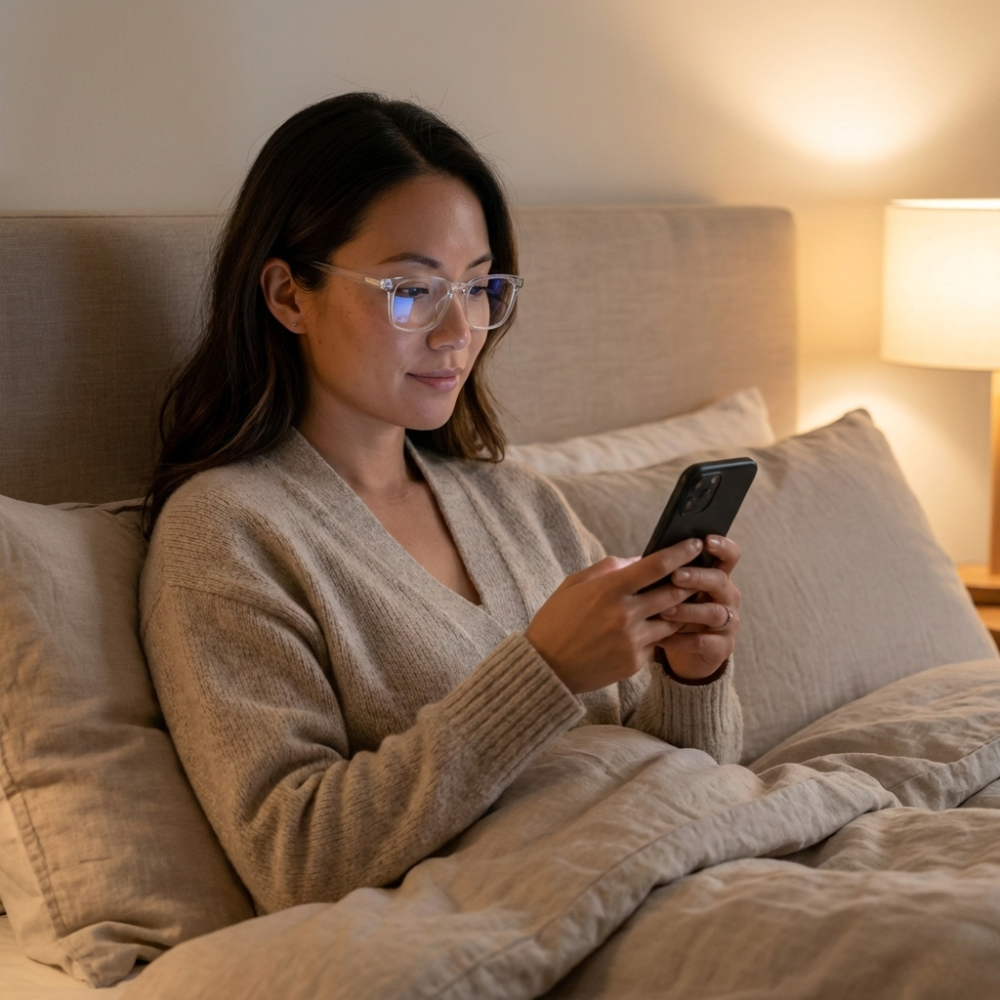 RESTED blue light glasses minimise blue light exposure before bedtime, supporting natural melatonin production and better sleep quality.