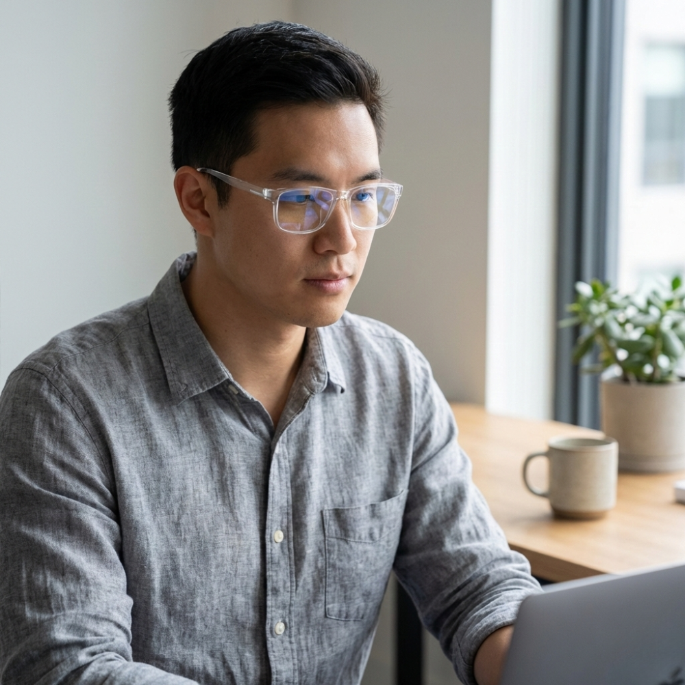 No. Clear blue light lenses are designed for everyday use and feel natural to wear. They fit easily into daily routines without changing how you see colours or use your screens.